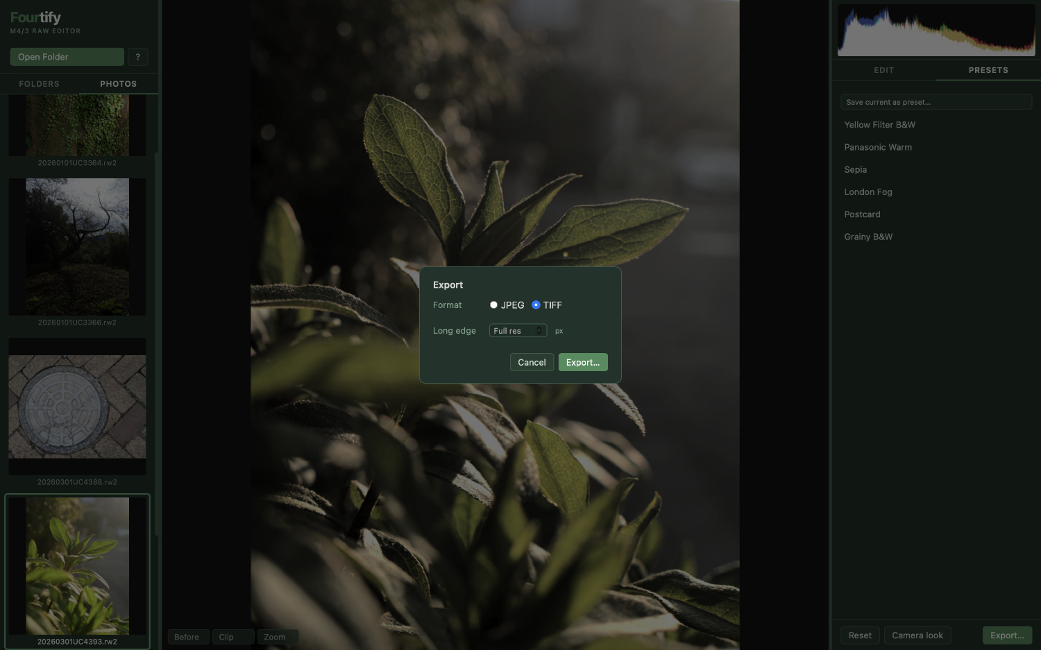 So if you shoot raw on micro four thirds and export to JPG or TIF for your workflow, I'm planning this free four->tif utility I called Fourtify. I'm currently looking for people to help me test it. Contact: michael@werneburg.ca