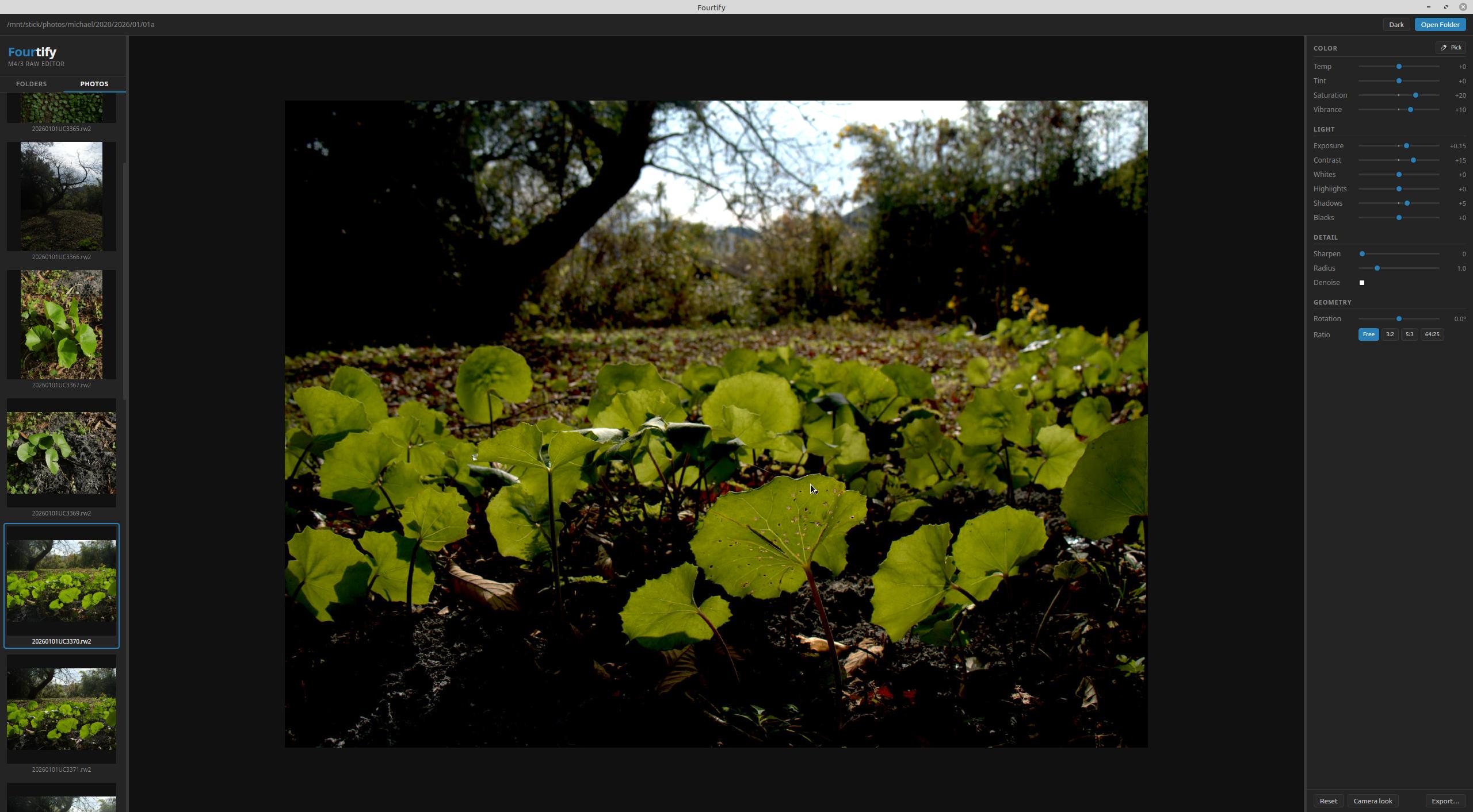 I've decided to narrow the scope of my photo editing software to just micro-four-thirds raw images. I reckon that between my Lumix G9ii, E-M5ii, E-M5iii, E-M10ii, and OM5i images, I'll have enough examples to sort out how the different files behave. And because I'm working with four-thirds files and exporting TIF (and JPG), I'm calling it the fourtify project. Little pun, there. Here's what it looks like right now.